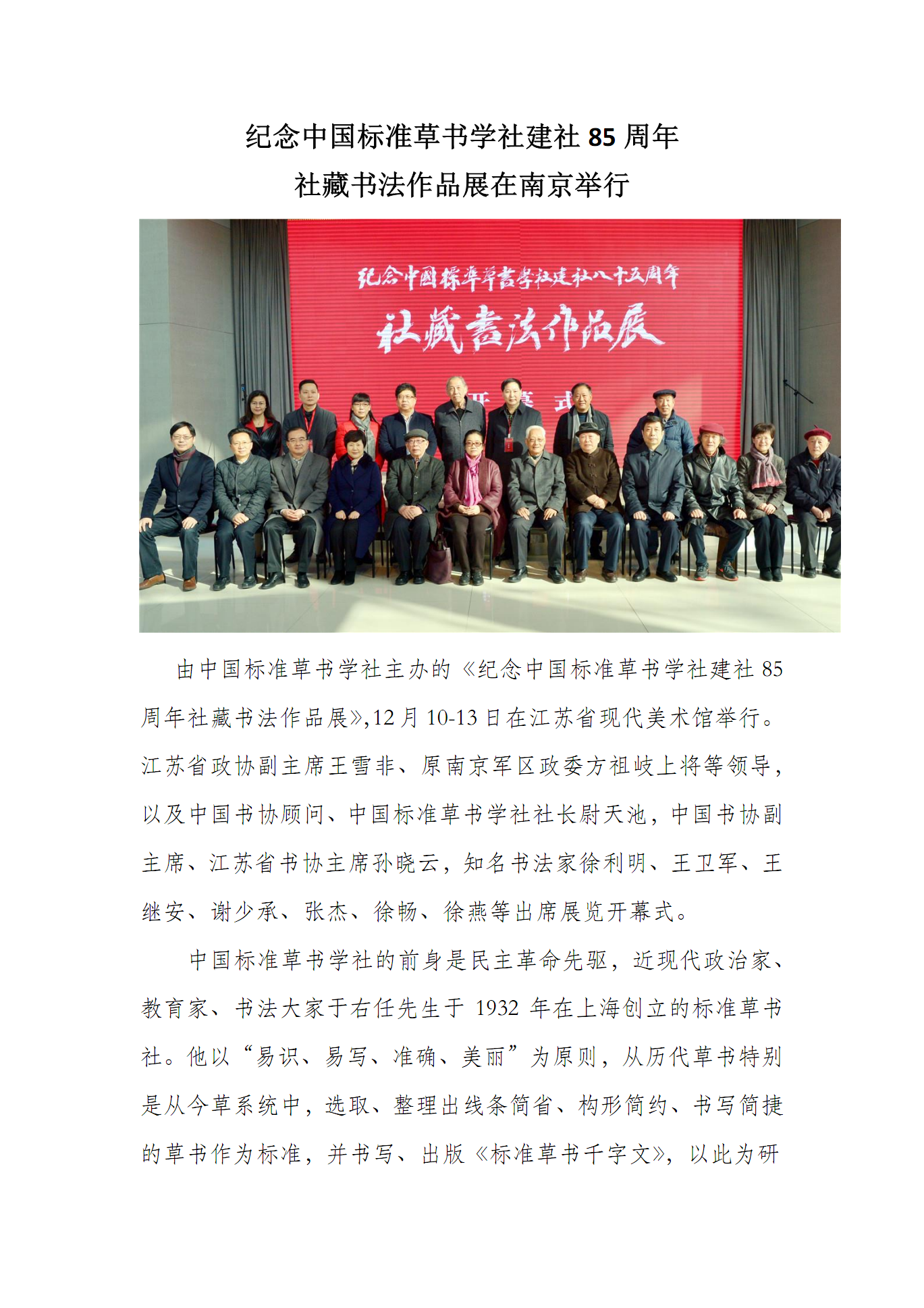 纪念中国标准草书学社建社85周年 社藏书法作品展在南京举行
