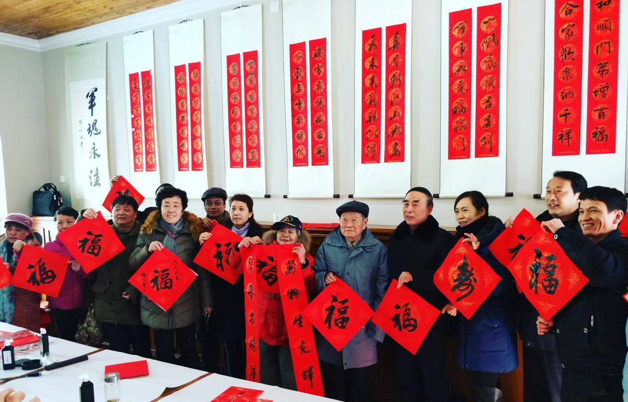 活动引起了多方面响应。开展仪式上,南京芳草园书画会组织几位将军也来“鲁迅楼”为居民写福送福(图1右5为86岁的原南京军区副司令郭锡章中将在活动现场)。