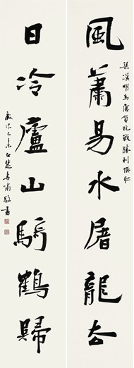 李啸 《风萧·日冷》对联 楷书 153cm×29cm×2 草书社 103951-1