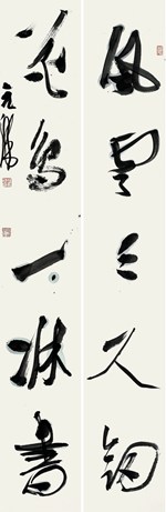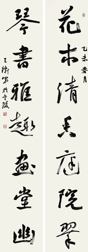王卫军 《花木·琴书》对联 行书 136cm×35cm×2 草书社 103950-2