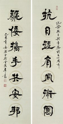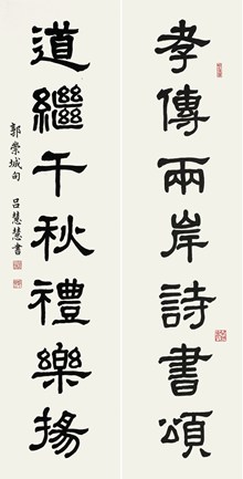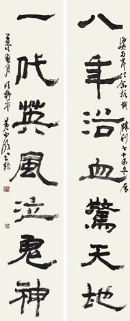 黄正明 隶书 《八年·一代》七言联 137cmX27cmX2