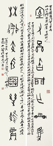 王冰石 《室有·林防》对联 甲骨文 180cm×32cm×2 草书社 103961-1