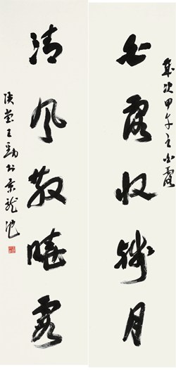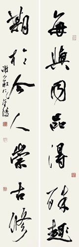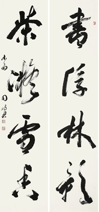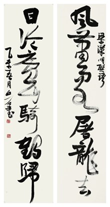 丘石 《风萧·日冷》对联 草书 137cm×34cm×2 草书社 103946