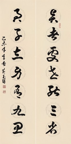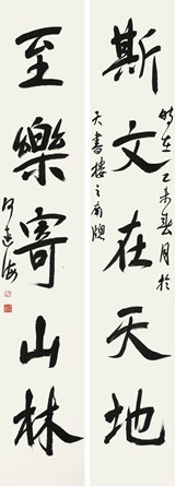 何连海 《斯文·至乐》对联 行书 180cm×31cm×2 草书社 103952-1