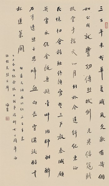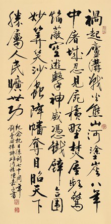 陈嘉子 行书 刘丰田 《七律·纪念抗日战争胜利七十周年》138cmX69cm