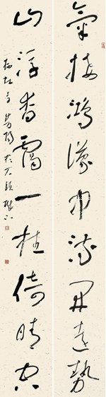王劲 《白露·清风》对联 草书 135cm×35cm×2 草书社 103795-1