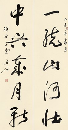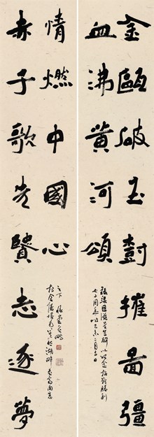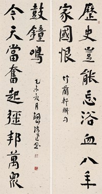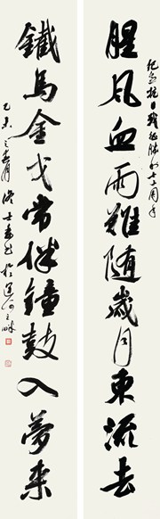 佟士委 《腥风·铁马》对联 行书 180cm×28cm×2 草书社 103936-1