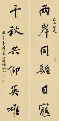 陈克年 《两岸·千秋》对联 行书 136cm×34cm×2 草书社 103958-1