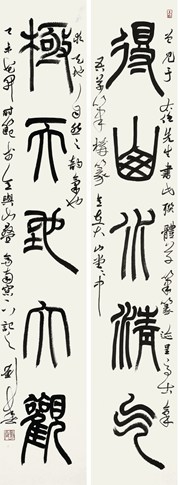 刘春 《得山·极天》对联 篆书 180cm×32cm×2 草书社 103953-1