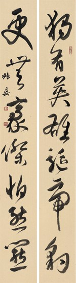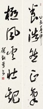 顾敏芳 《养浩·极风》对联 草书 126cm×26cm×2 草书社 103949-1