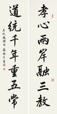 蔡锦沂 《孝心·道统》对联 草书 135cm×35cm×2 草书社 103794-1