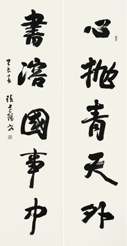 张道扬 《心抛·书溶》对联 行书 178cm×48cm×2 草书社 103935-1