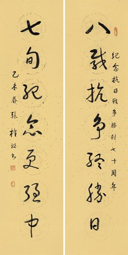 张杰 《抗日·驱倭》对联 隶书 136cm×35cm×2 草书社 103948-1